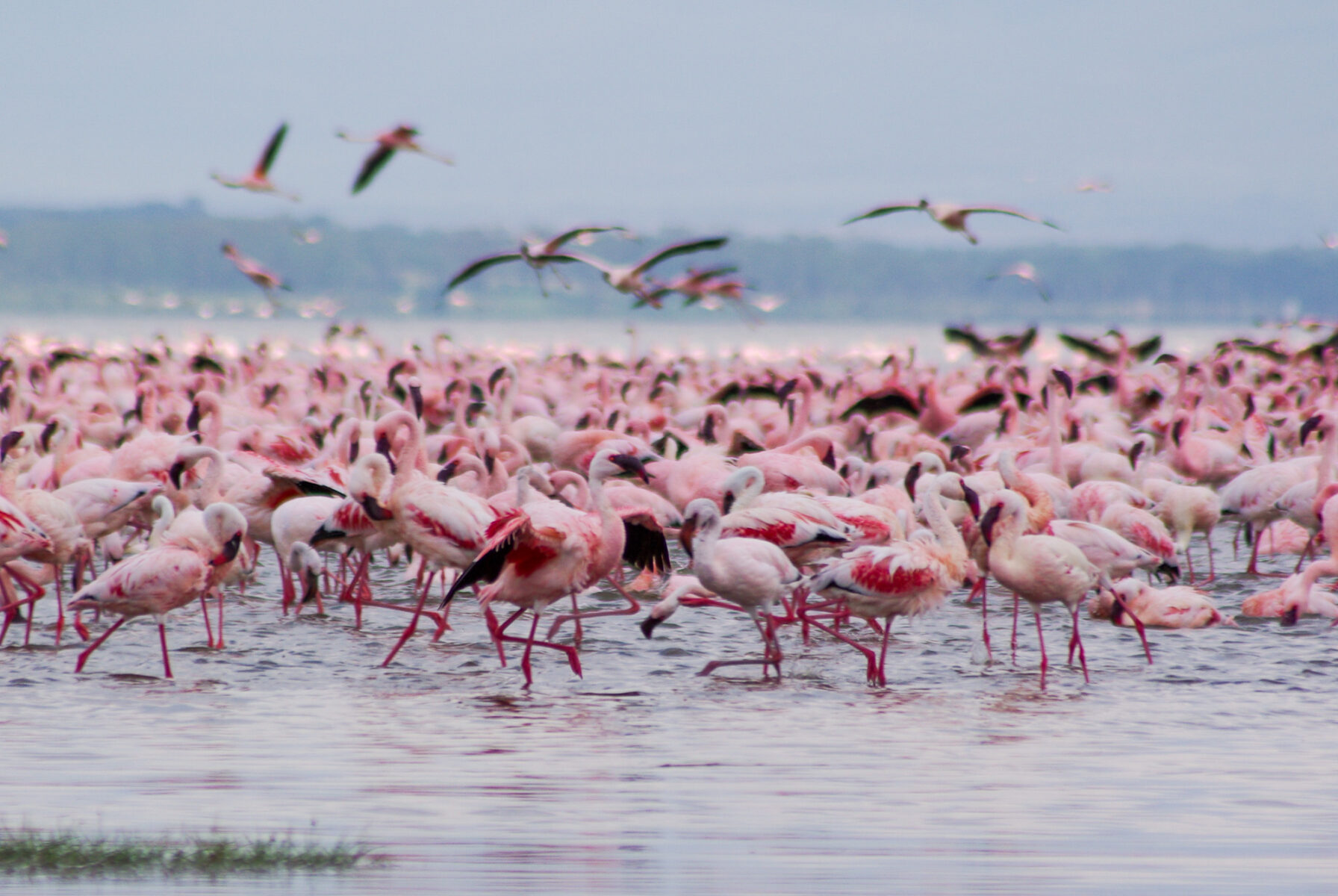 The main attraction of Lake Nakuru – thousands of lesser flamingos!