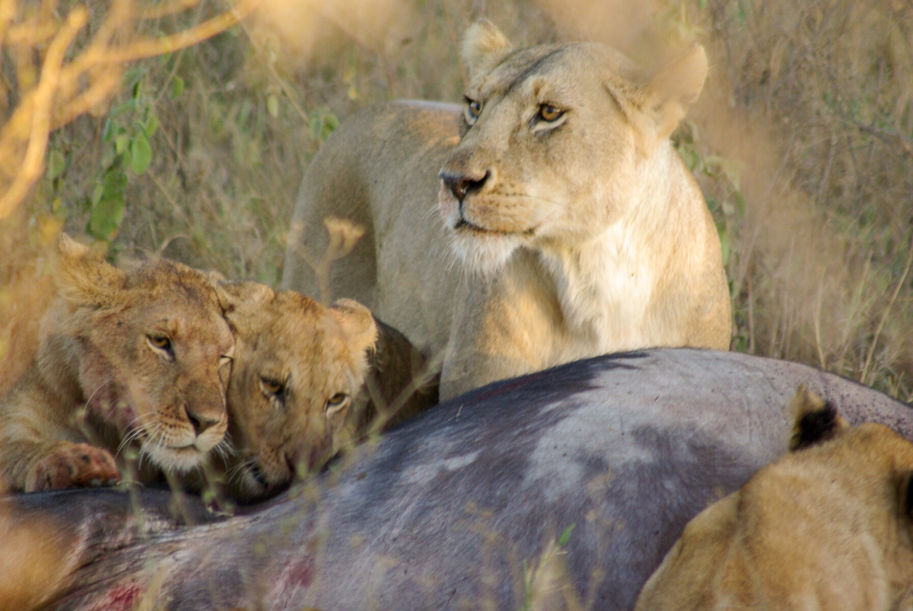 Lions on a kill – we just missed the takedown of this large buffalo. The lions fed on it for the next two days.