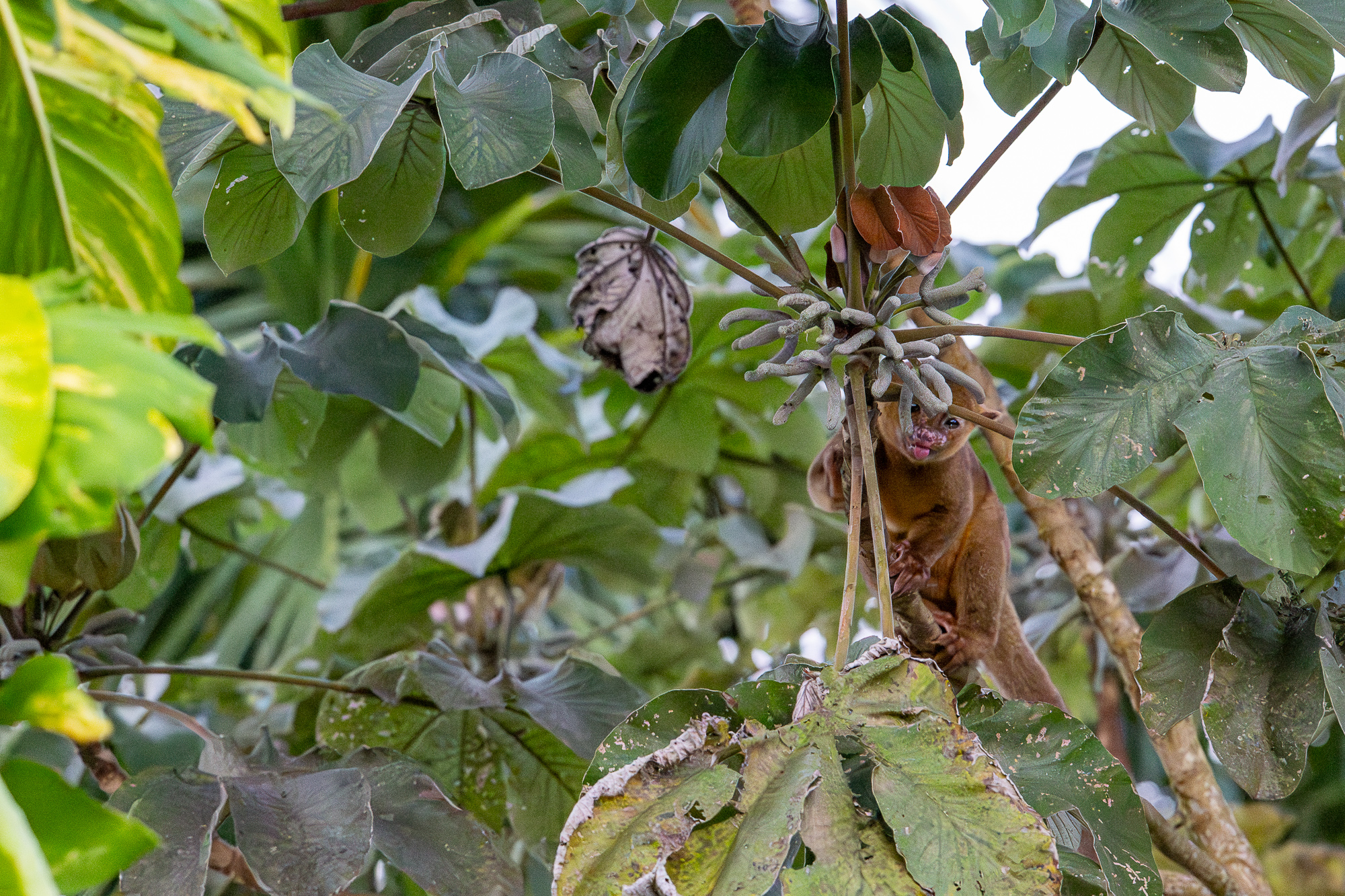 A kinkajou came to join us for dinner one night in San Ignacio