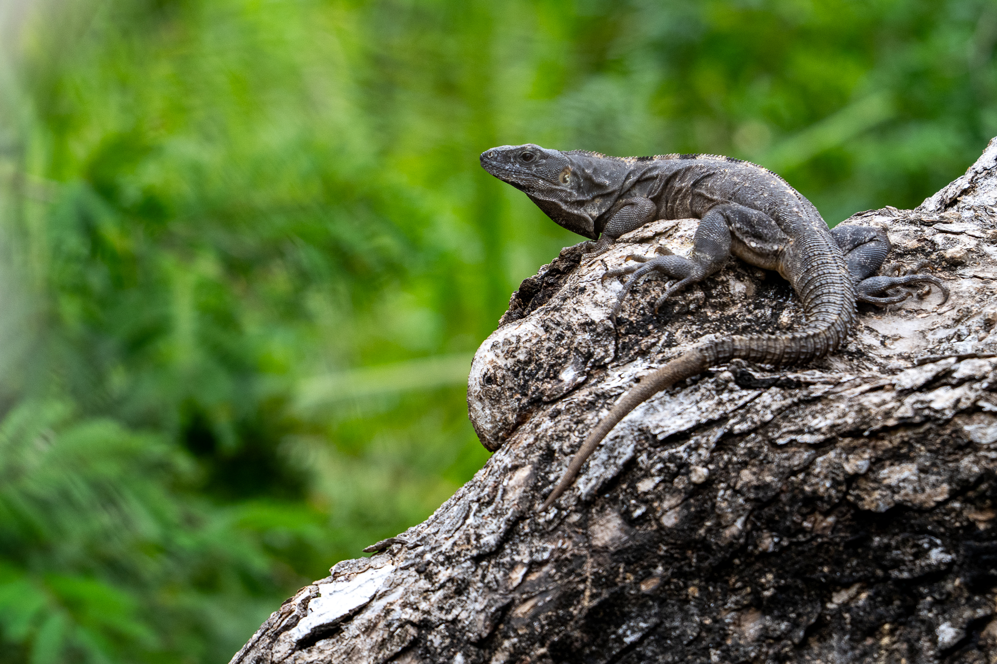 We arose early for a long drive to Orange Walk in the Northern part of Belize, and from there caught a boat to take us to the Mayan ruins of Lamanai. Along the river we saw this black spiny-tailed iguana