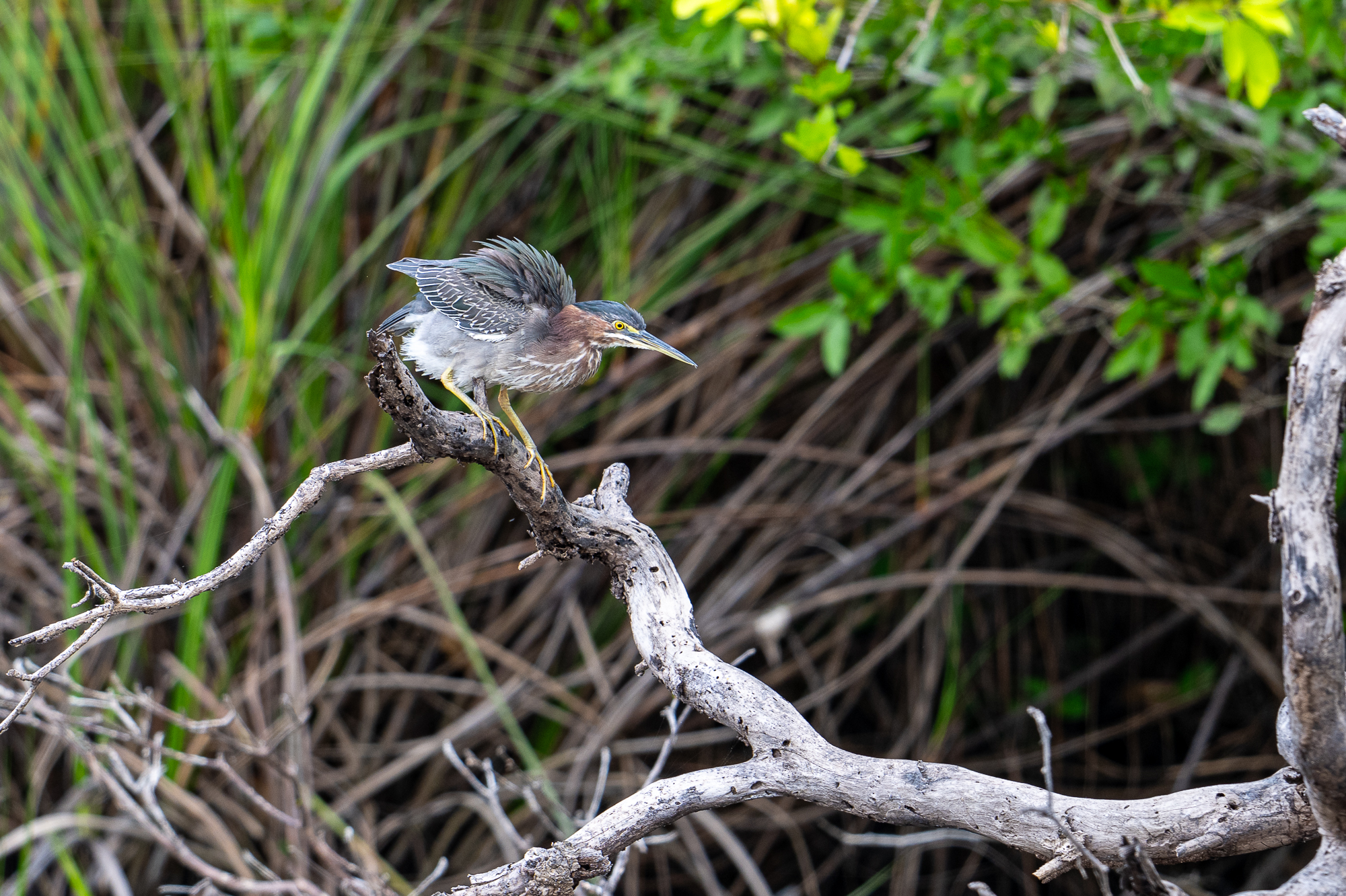 A green heron hunting for breakfast