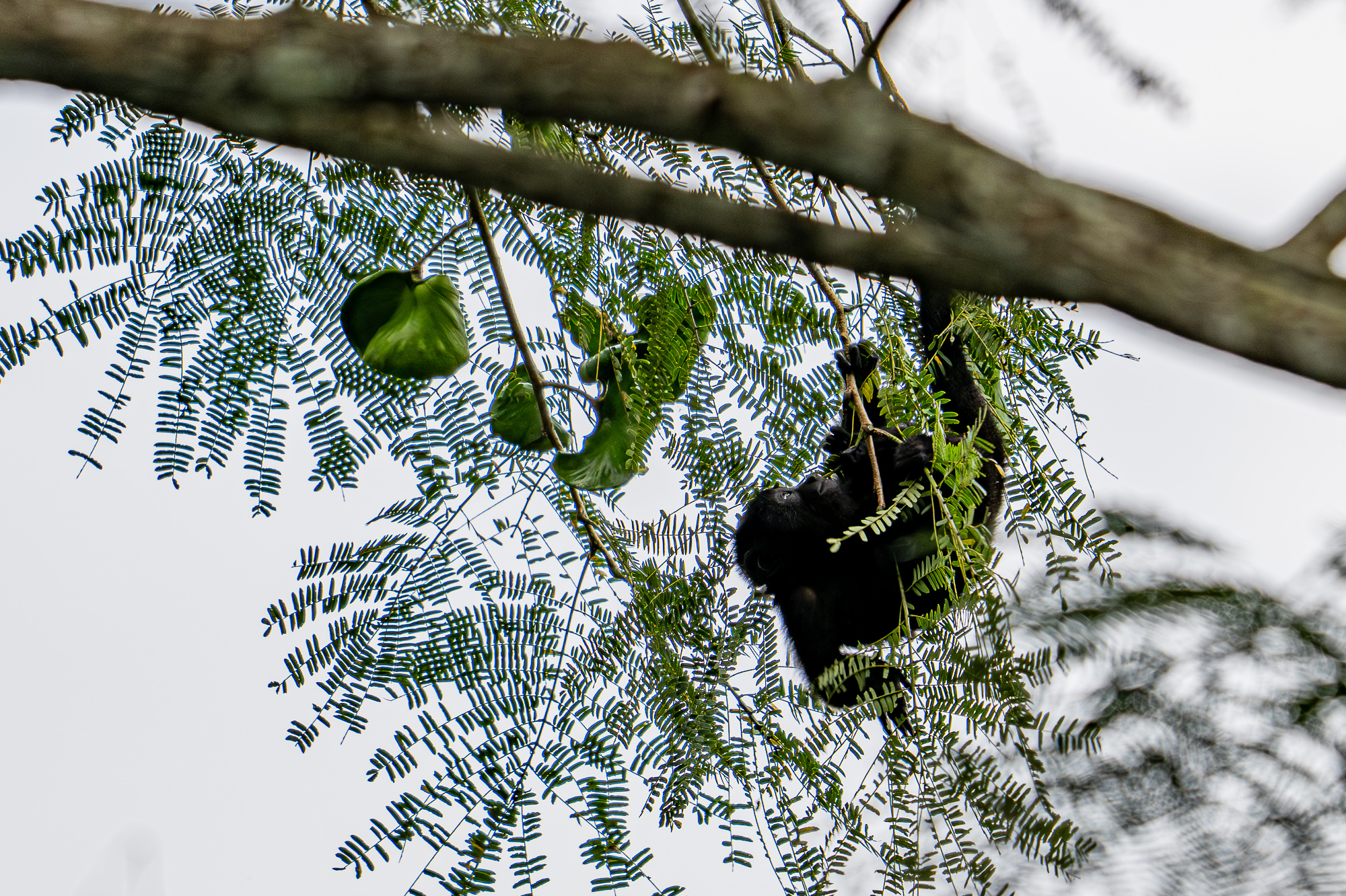 As we arrived at the Mayan site of Lamanai, we found this baby howler monkey dangling upside down from a tree