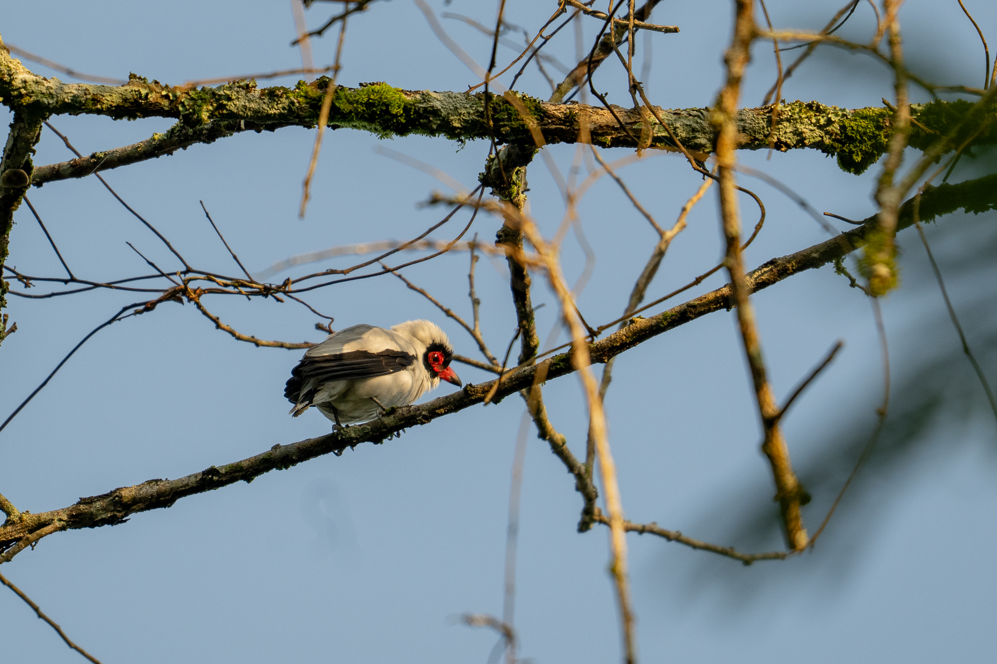 Masked tityra – this is a male, identifiable by the black mask. The females masks are grey and a little less-defined.