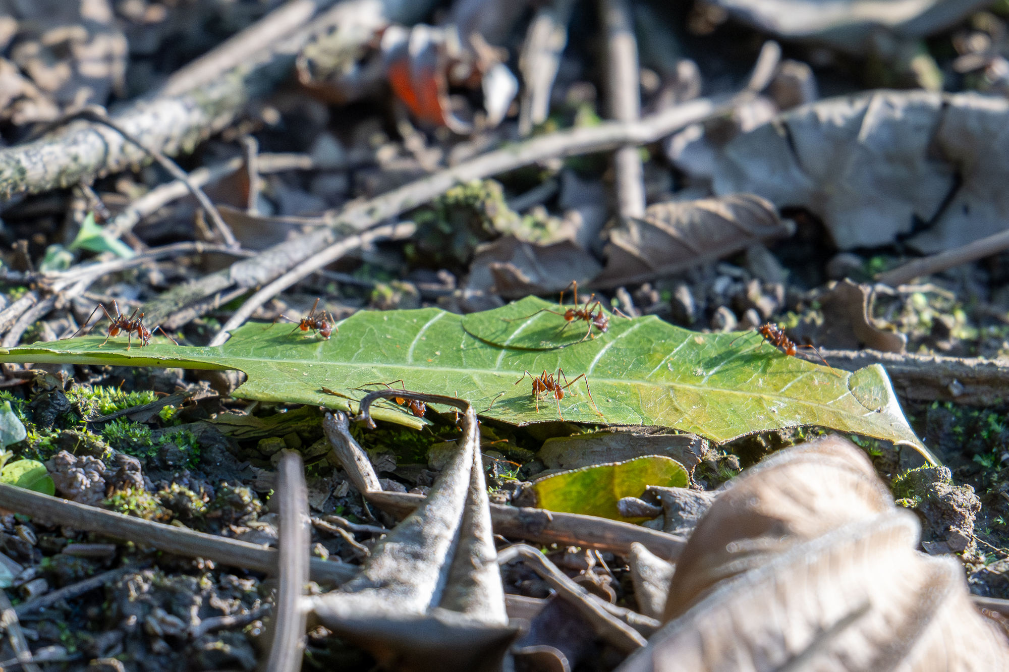 Leaf-cutter ants hard at work. There was a huge line of these ants dicing up and harvesting the leaves off the forest floor.